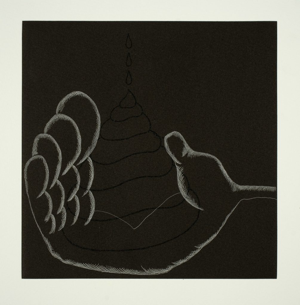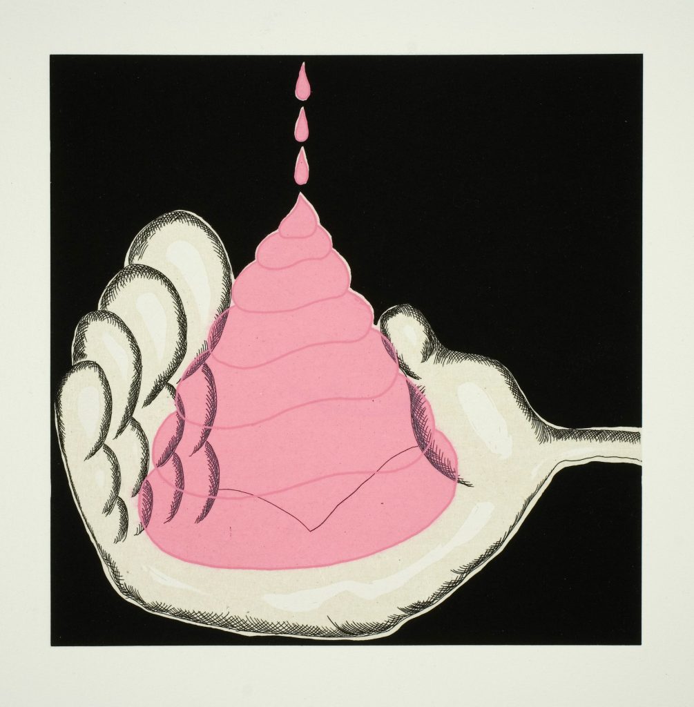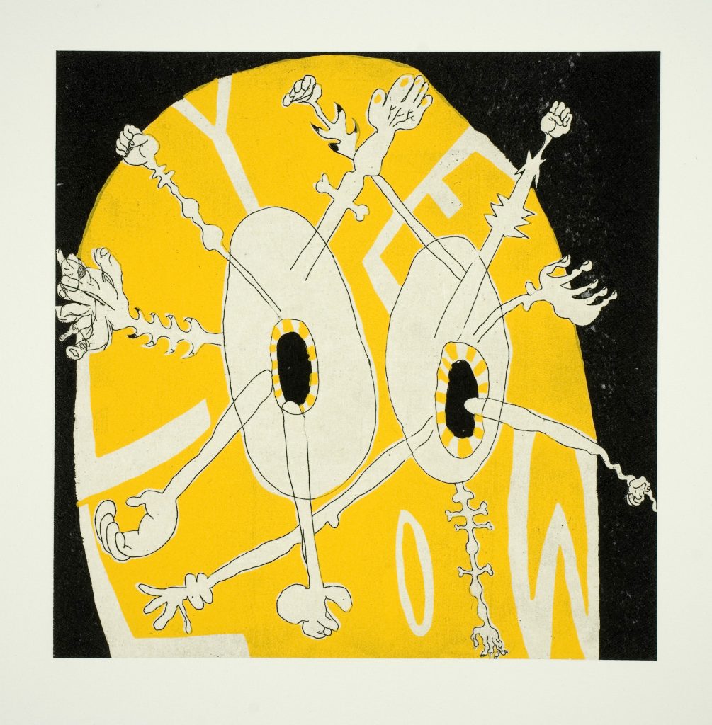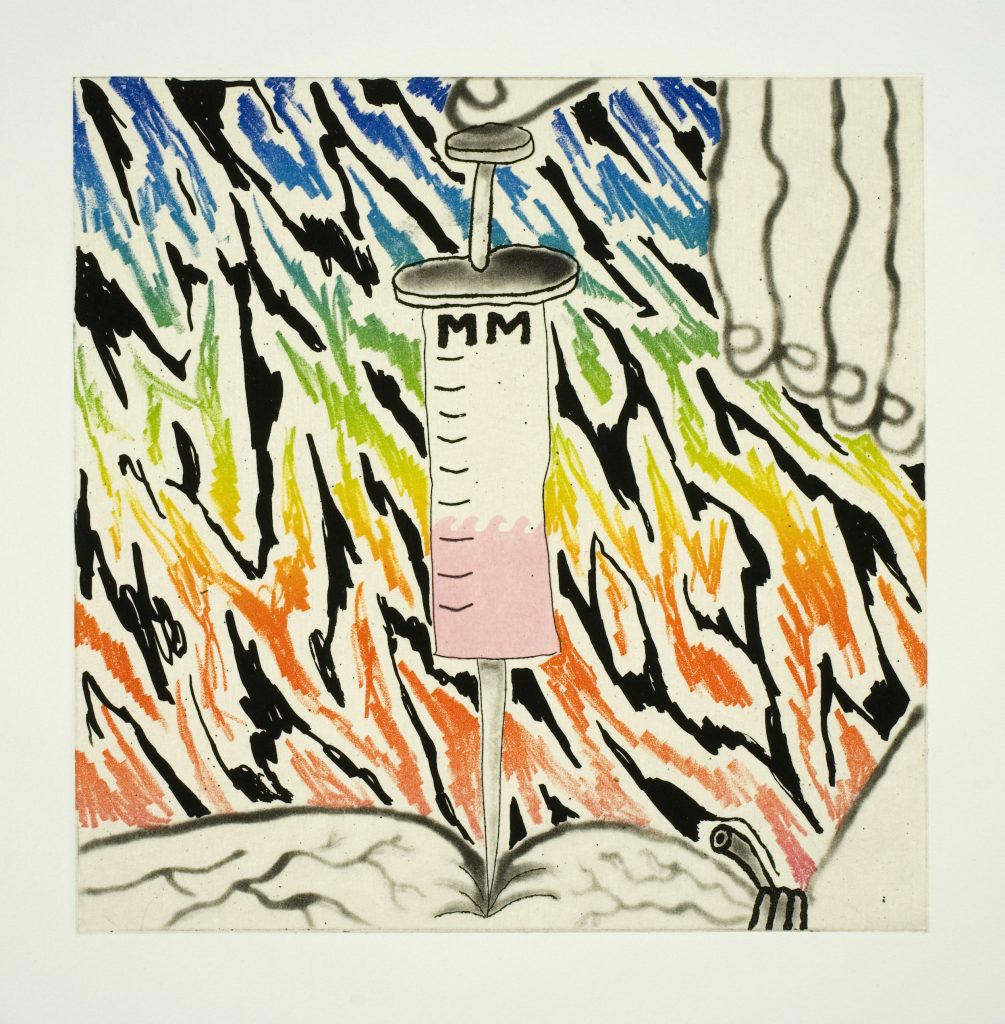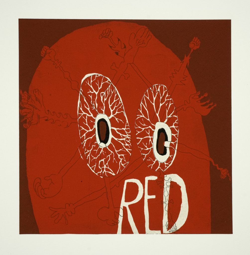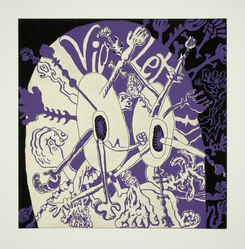 In Hancock’s fantasy universe, the world in divided into “vegans,” who are evil and permanently confined to a black- and-white underground world, and the good “mounds,” who are born and then followed in life, death, dreams and afterlife. In the narrative developed in this group of prints, the two come together in a triumph of magnificent colors. Hancock completed his MFA at Tyler School of art in Philadelphia. This portfolio is in the collection of the Metropolitan Museum of Art, New York, and the Museum of Fine Arts Houston.