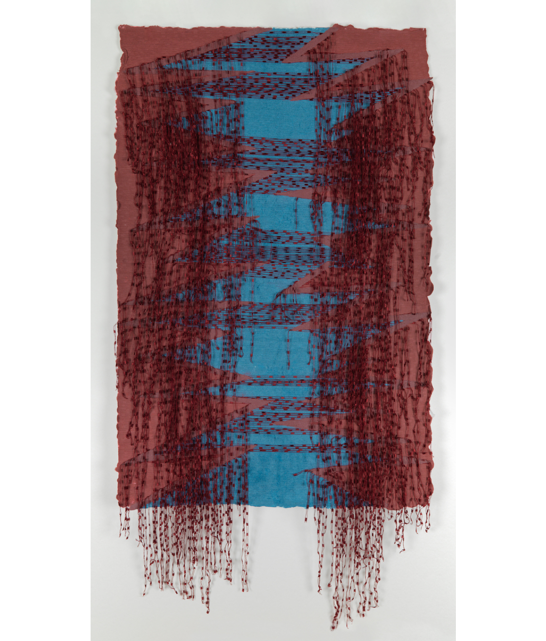 Liz Collins (American, b. 1968), Fractured/Portal, 2021, approximately 57 x 30 inches overall, handmade cotton paper with cotton pulp painting, embedded rayon yarns, and pigmented cotton pulp. Unique edition of 2 variants. Published by the Brodsky Center at PAFA, Philadelphia.