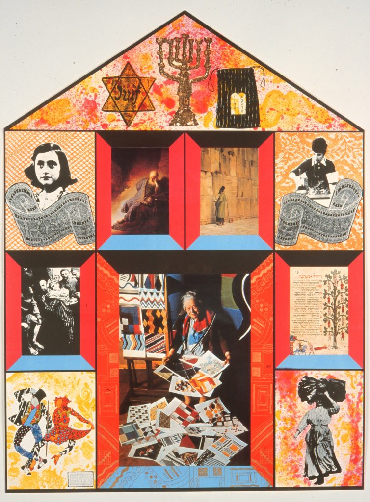 Schapiro is a key figure in the women’s art movement of the 1970s. She founded the groundbreaking Feminist Art Program at CalArts in 1971. Its first project was Womanhouse (1971–1972), a collaborative effort in which twenty-three women transformed an abandoned mansion in Los Angeles by creating rooms that addressed women’s experiences. At about the same time, Schapiro produced her first “femmages,” in which she combined fabric and paint into a new kind of collage, with a specific meaning for and about women.